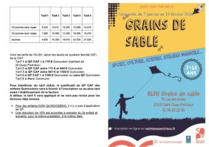 L’Accueil de loisirs sans hébergement « Grains de Sable » est situé à côté du groupe scolaire public « Les Embruns », 19 rue des Ecoles. Ce service municipal est agréé par la Direction Départementale Jeunesse et Sports.
