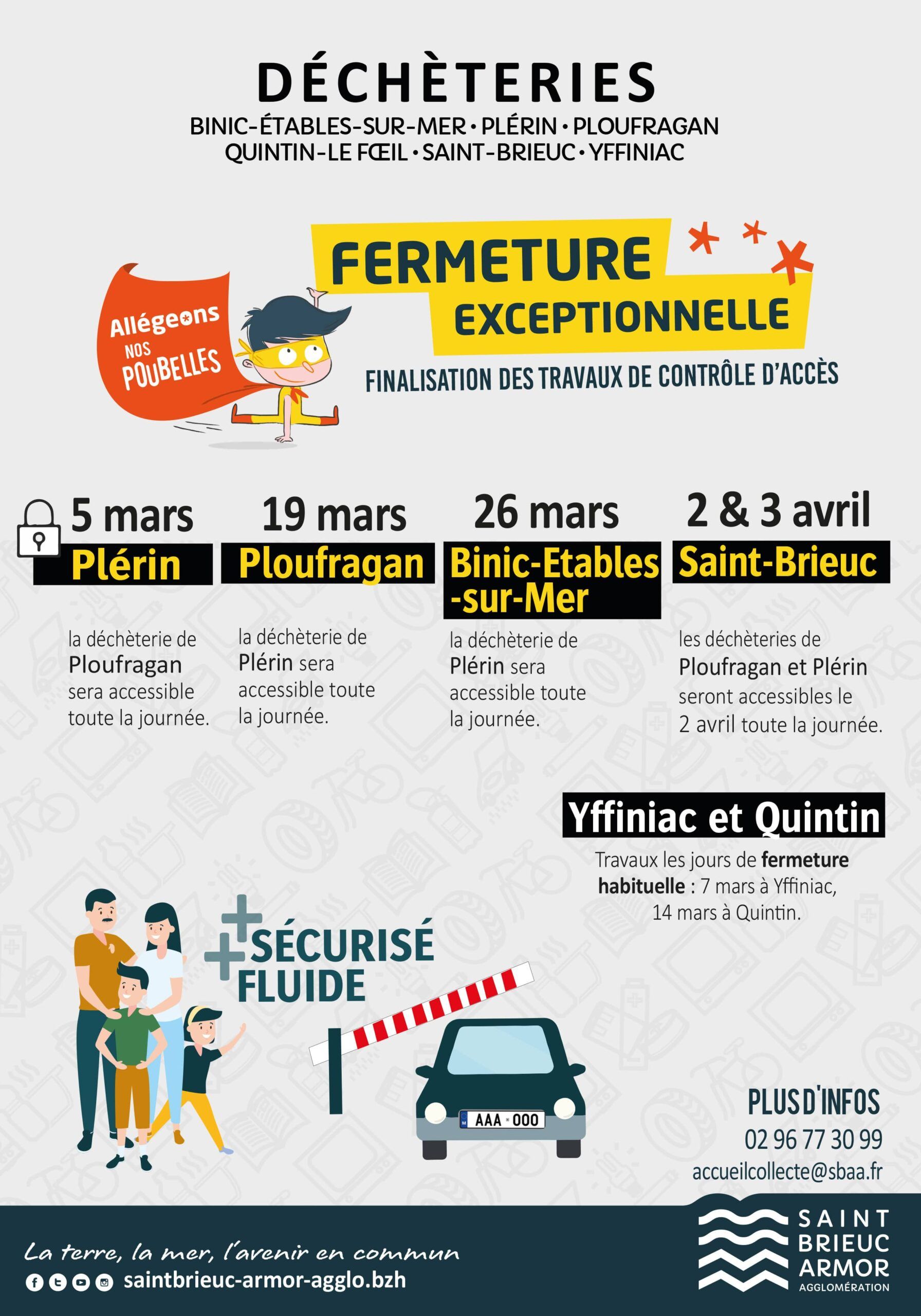 > ouverture de la déchèterie de Ploufragan toute la journée en compensation. - Ploufragan : Fermée le mardi 19 mars, toute la journée