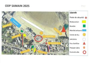 - Bd De Gaulle, parking « Zone bleue » : L’installation du pressoir à cidre débutera le mercredi 29 octobre 2025, à 8h00. L’installation des stands et du Food Truck aura lieu du jeudi 30 octobre 2025, 8h00, au samedi 1er novembre 2025, 2h00.