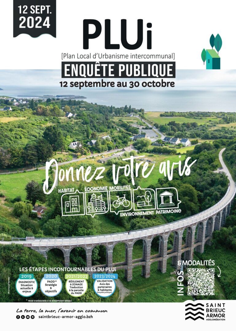 Ce projet de PLUi arrêté a été transmis aux communes ainsi qu’aux personnes publiques associées – c’est-à-dire l’État, la Région, le Département, le Syndicat mixte de la Baie de Saint-Brieuc, les chambres consulaires… – qui disposaient de trois mois pour émettre un avis sur le dossier. Ce dossier, assorti des avis des communes et des personnes publiques associées, sera soumis à enquête publique du 12 septembre au 30 octobre afin que les habitants puissent apporter leurs observations et faire part de leurs demandes. Une commission d’enquête tiendra des permanences en plusieurs lieux du territoire afin de recevoir le public.