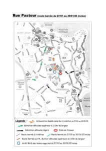 - Pour les véhicules légers : itinéraire conseillé par la rue Georges Clemenceau, le Quai de la République, l’avenue Bocuze, l’avenue de la Comtesse et le boulevard du Maréchal Foch.