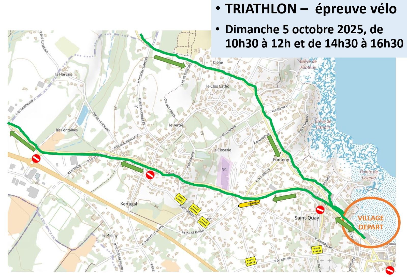 ARRETE MUNICIPAL MODIFICATIF 25/PSH 437 Portant sur la circulation et le stationnement à l'occasion du Triathlon de la Baie d'Armor, à Saint-Quay-Portrieux, le dimanche 05 octobre 2025.