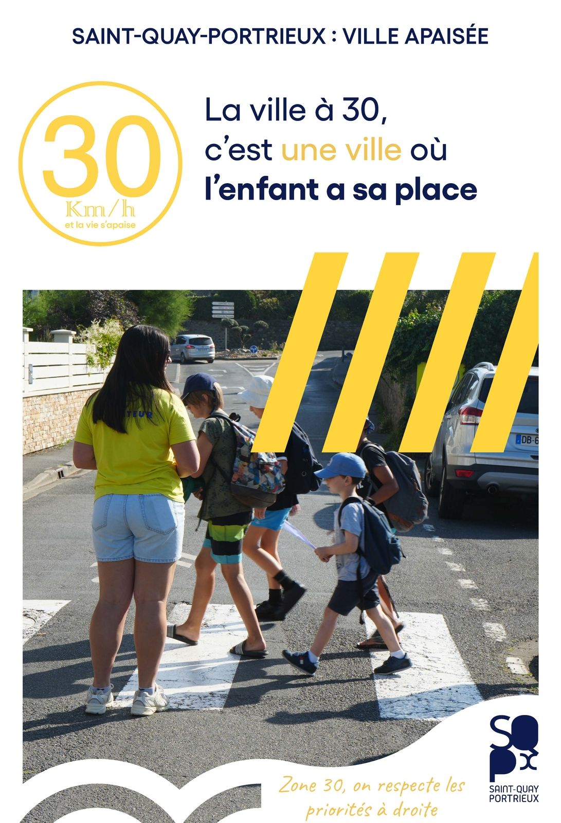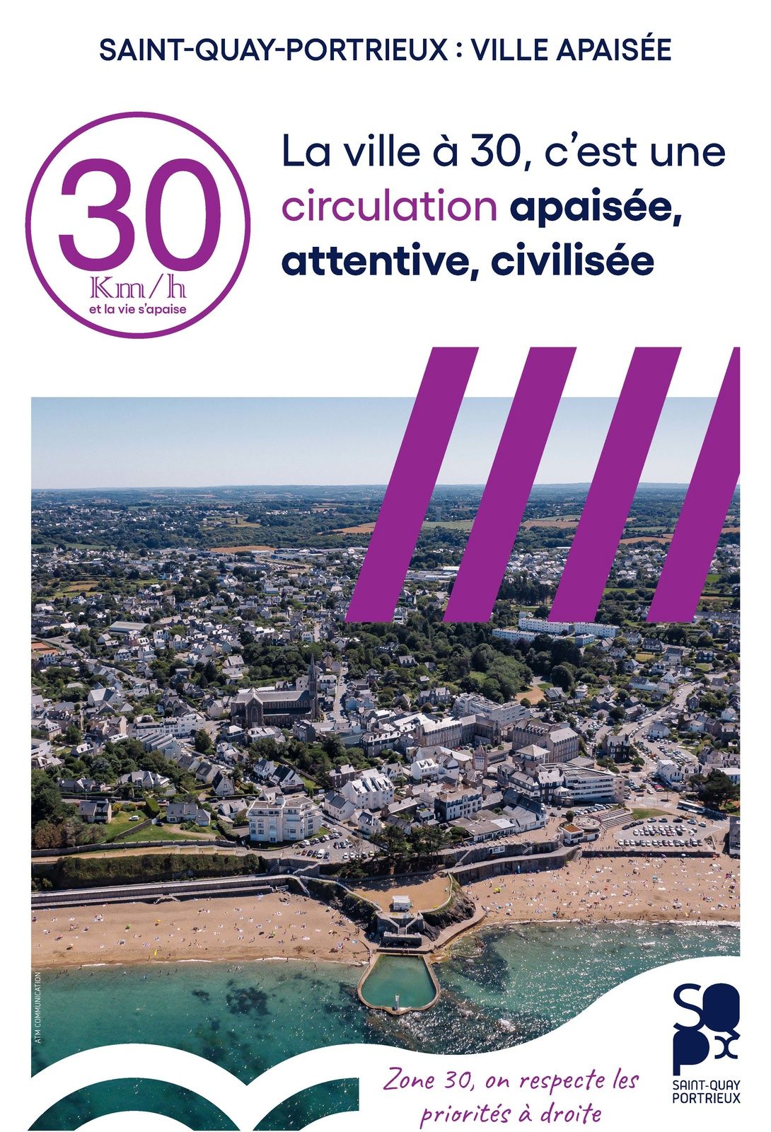 C’est une nouvelle étape d’une dynamique continue d’apaisement de la ville. Sécurité, qualité de vie, partage de la voirie, les avantages sont nombreux. Depuis plusieurs années, la Ville de Saint-Quay-Portrieux s’engage pour une ville apaisée en privilégiant les mobilités douces (piétons, vélos, etc.) et en déployant des zones de circulation apaisée : zones de rencontre 20, chaucidous, vélo-rues… La mesure d’abaissement de la vitesse réglementaire consiste à établir la limitation à 30 km/h comme norme sur la majorité des voies de circulation pour inverser la logique actuelle. Il s’agit de passer à la «Ville à 30» où 30 km/h est la règle. L’instauration de la règle de la priorité à droite, en l’absence de marquage au sol, est associée à la limitation à 30 km/h. La vitesse sur la RD786 restera inchangée.